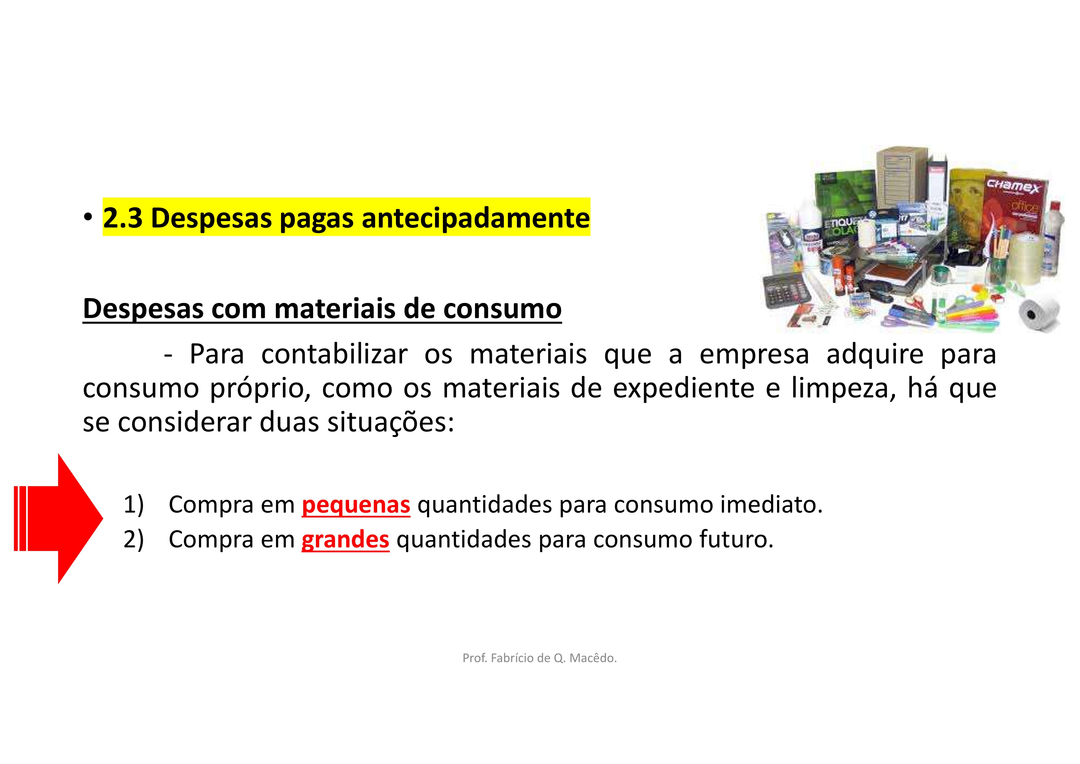 Despesas Pagas Antecipadamete: Despesas com Materiais de Consumo